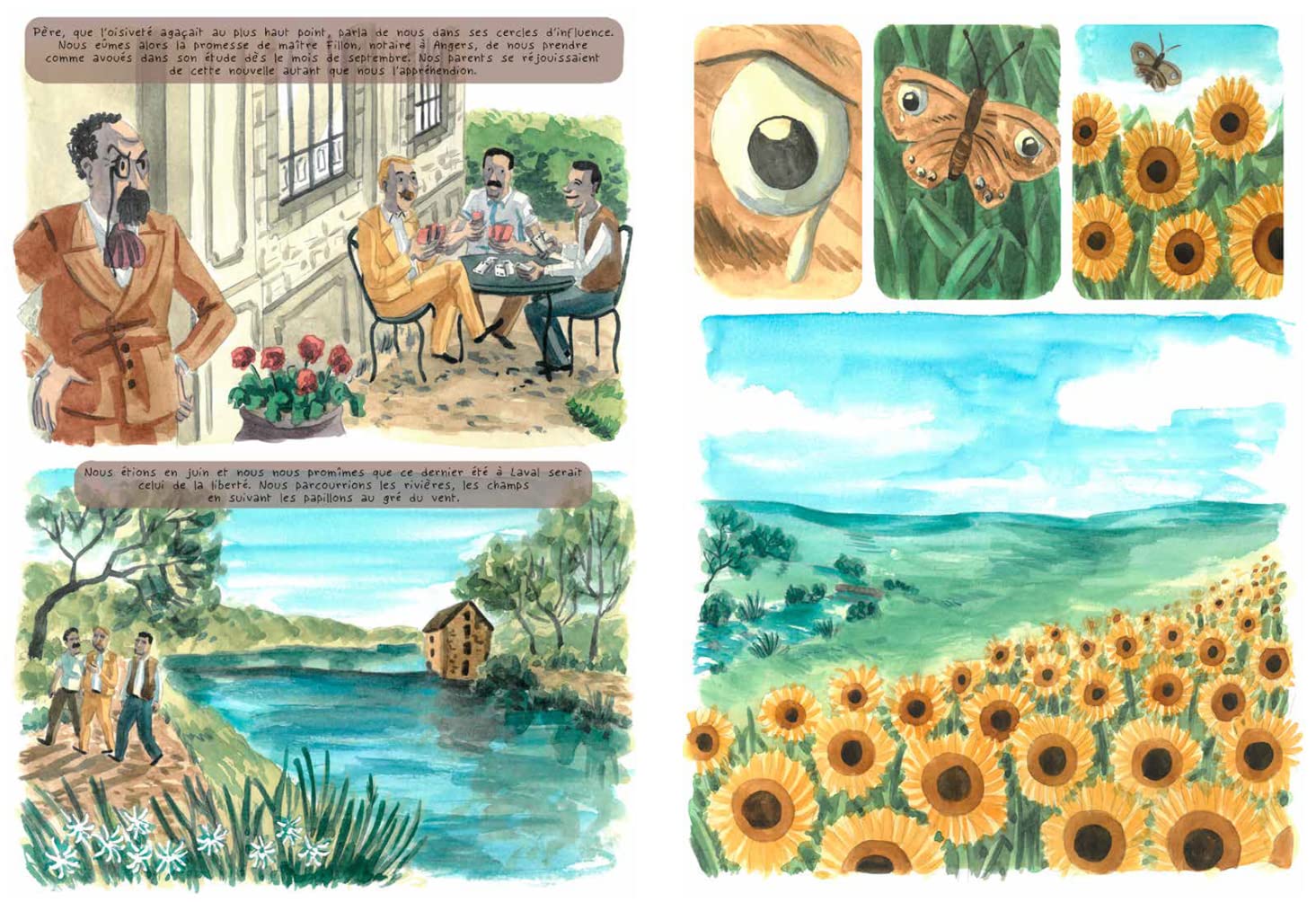 Pas facile de donner un aspect visuel à une enquête journalistique, encore moins quand il s’agit de quelque chose d’un peu abstrait comme le financement des partis politiques et des élections. Les auteurs ont pris le parti d’une forme de promenade dans Paris avec un arrêt pour prendre un café, au cours de laquelle les deux journalistes Élodie Guéguen & Silvain Tronchet se mettent en scène en train de discuter avec un monsieur en imperméable et chapeau mou, promenant son chien, qui incarne l’amalgame de plusieurs de leurs informateurs, sous les traits de Monsieur X, vraisemblablement la soixantaine, et ayant connu plusieurs décennies de fonctionnement des partis politiques, de l’intérieur. Le lecteur bénéficie ainsi d’une longue promenade au cours de laquelle il reconnaît la tour Eiffel, des sorties de station de métro, le mur d’enceinte de l’Élysée, les arcades de la rue de Rivoli, la porte d’entrée du Conseil Constitutionnel avec sa magnifique sphinge, la place Vendôme, la pyramide du Louvre, les bouquinistes des quais de la Seine, la passerelle des arts, la place du colonel Fabien, Les Deux Magots, le jardin du Luxembourg, la promenade le long des quais de la Seine à Paris, le ministère des finances, la place de la Bastille, etc., pour finir place de la République devant le monument à la République du sculpteur Léopold Morice.